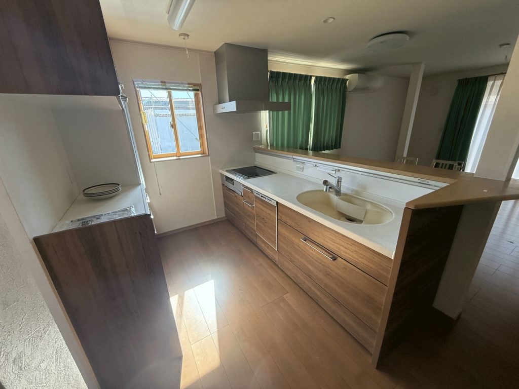 伊那市荒井の伊那小学校区内にある3LDKの戸建貸家 約20畳のLDKにカウンターキッチンで子供が見守りやすい造りです。