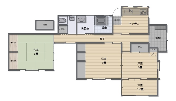 和室8畳 洋室8畳 洋室6畳 洋室3.6畳 DK5.6畳 |